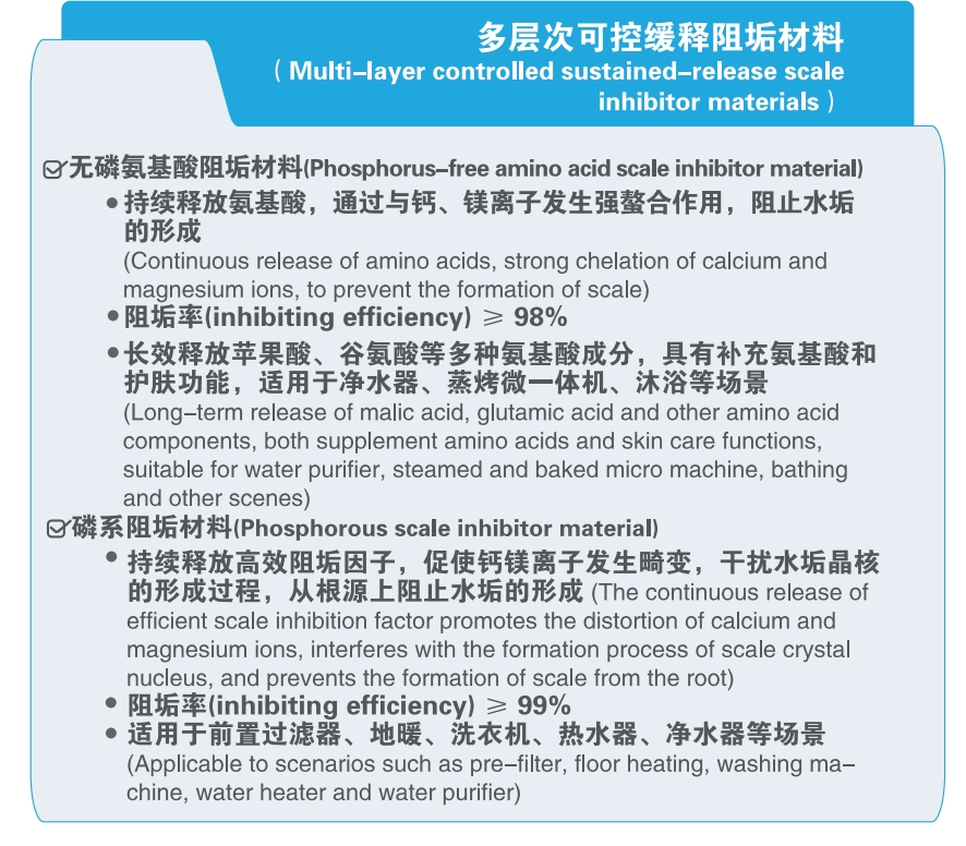 創新技術: 多層次可控緩釋阻垢技術 穩定釋放阻垢因子,讓鈣鎂離子發生畸變,從根源上cv阻止水垢的形成。