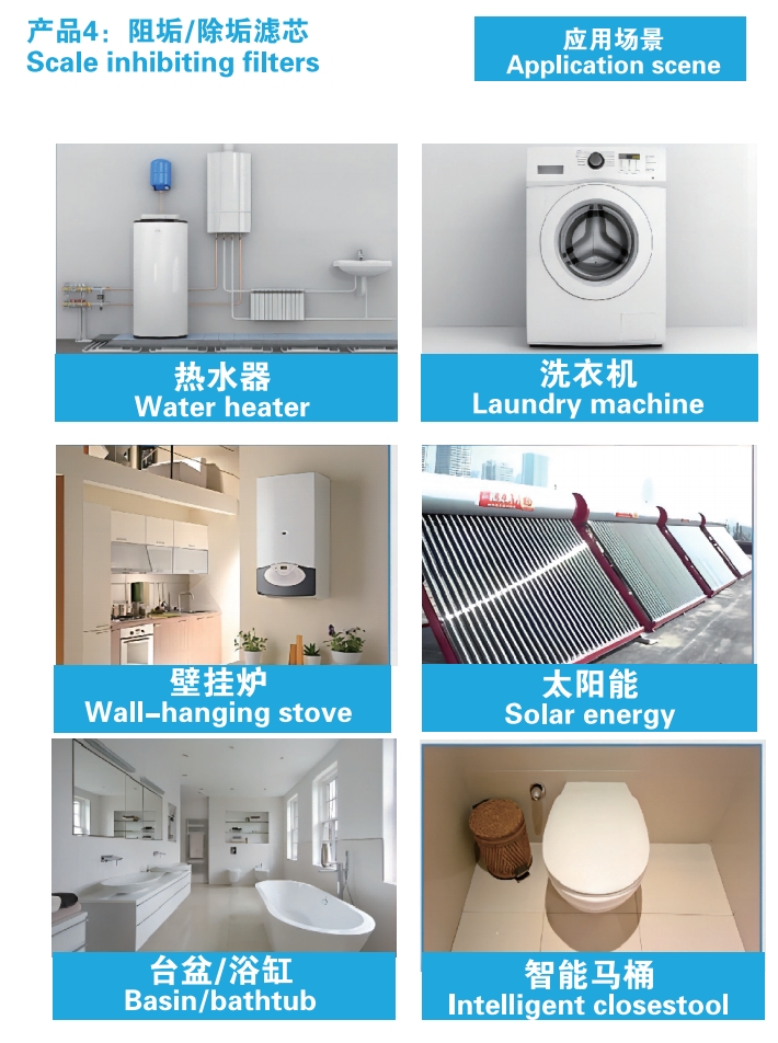 客戶需求: 家庭用戶希望延長電器壽命,減少水垢清潔頻率。 商業客戶需降低設備故障率,如咖啡機因水垢堵塞。 工業客戶追求節能降耗(水垢降低熱效率)。 使用場景: 家用電器:熱水器、加濕器、蒸汽熨鬥内置濾芯。 商業設備:咖啡機、制冰機、中央空調冷卻系統。 工業場景:鍋爐進水預處理、工業冷卻循環系統。