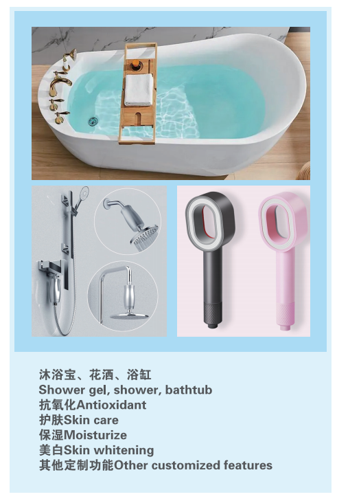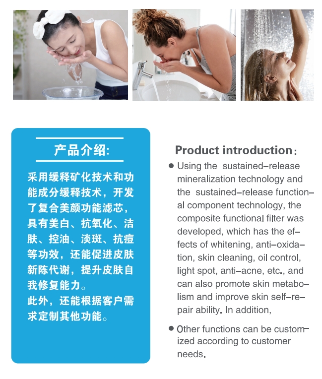 美容用戶追求“以水養膚”,希望濾芯提供煙酰胺等功效成分。 寵物主人關注寵物泌尿健康(如緩釋消炎成分)。 醫療機構需安全可控的抗菌沖洗方案。 使用場景: 美容儀器:蒸臉器、補水儀、智能鏡子内置濾芯。 高端衛浴:護膚淋浴頭、浴缸SPA系統。 寵物市場:添加維生素的寵物飲水機。 醫療康複:含消炎成分的術後沖洗設備。