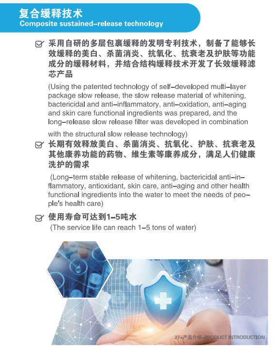 多層包裹緩釋技術 能長期有效釋放美白、殺菌消炎、抗氧化、護膚、抗衰老及其他康養功能的藥物、維生素等康養成分,滿足人們健康洗護的需求。