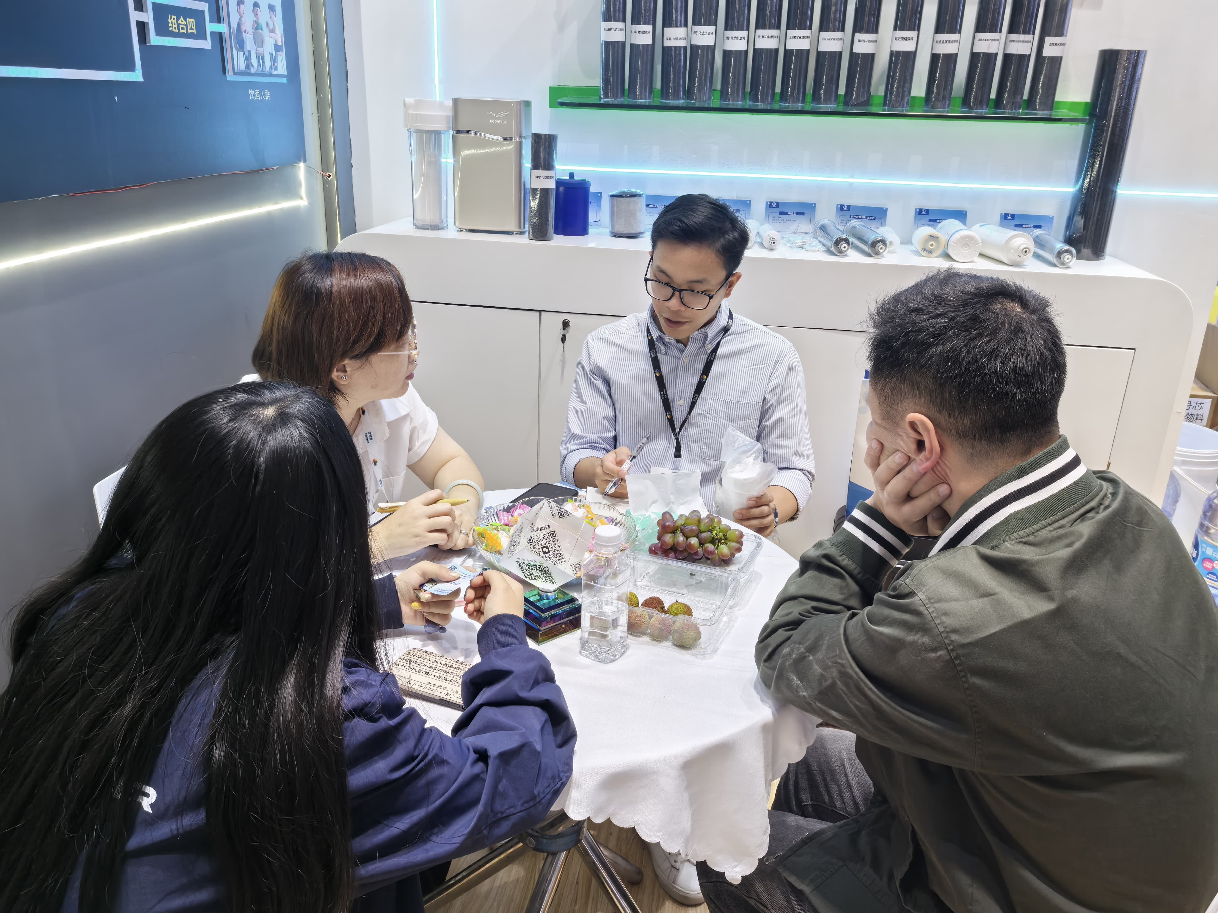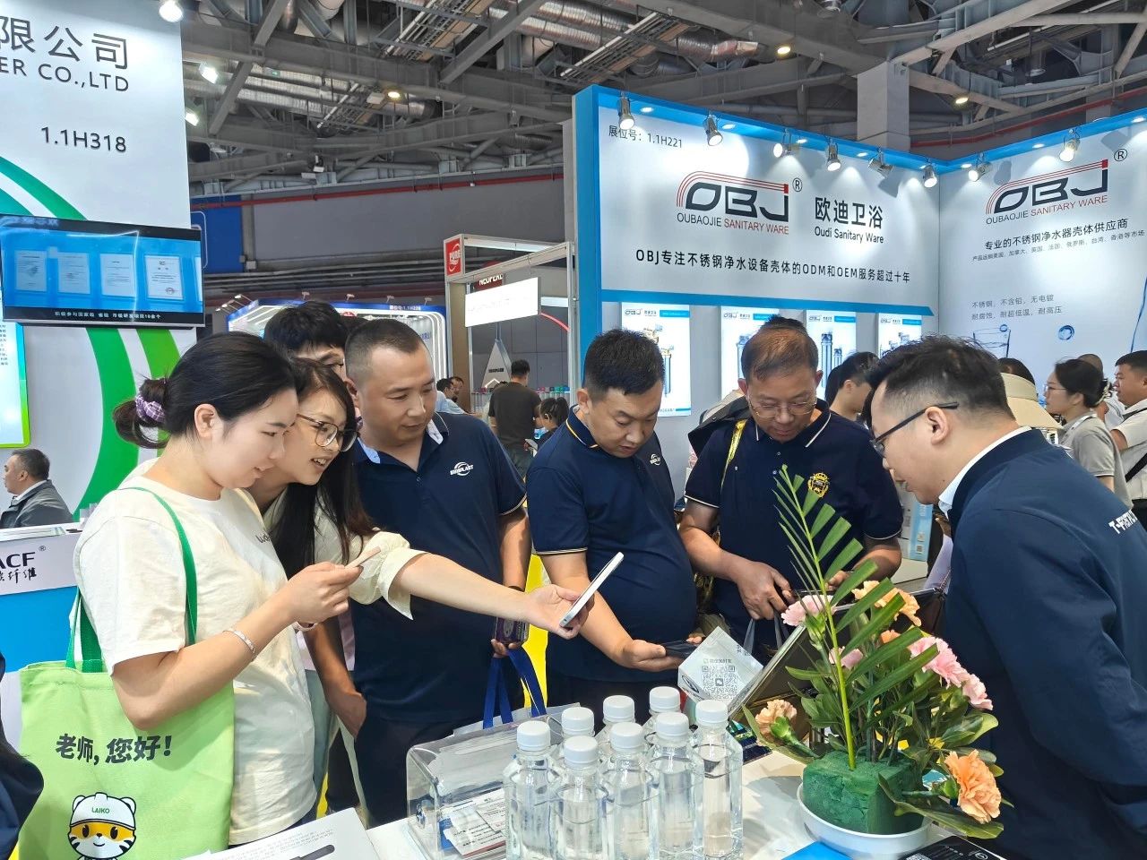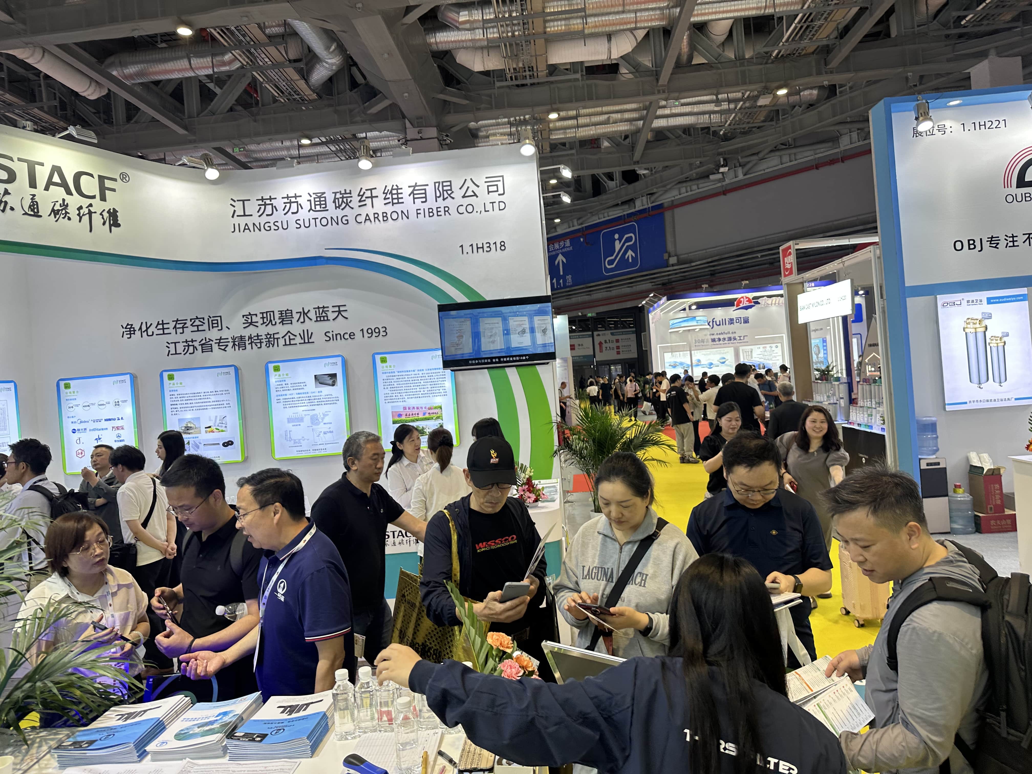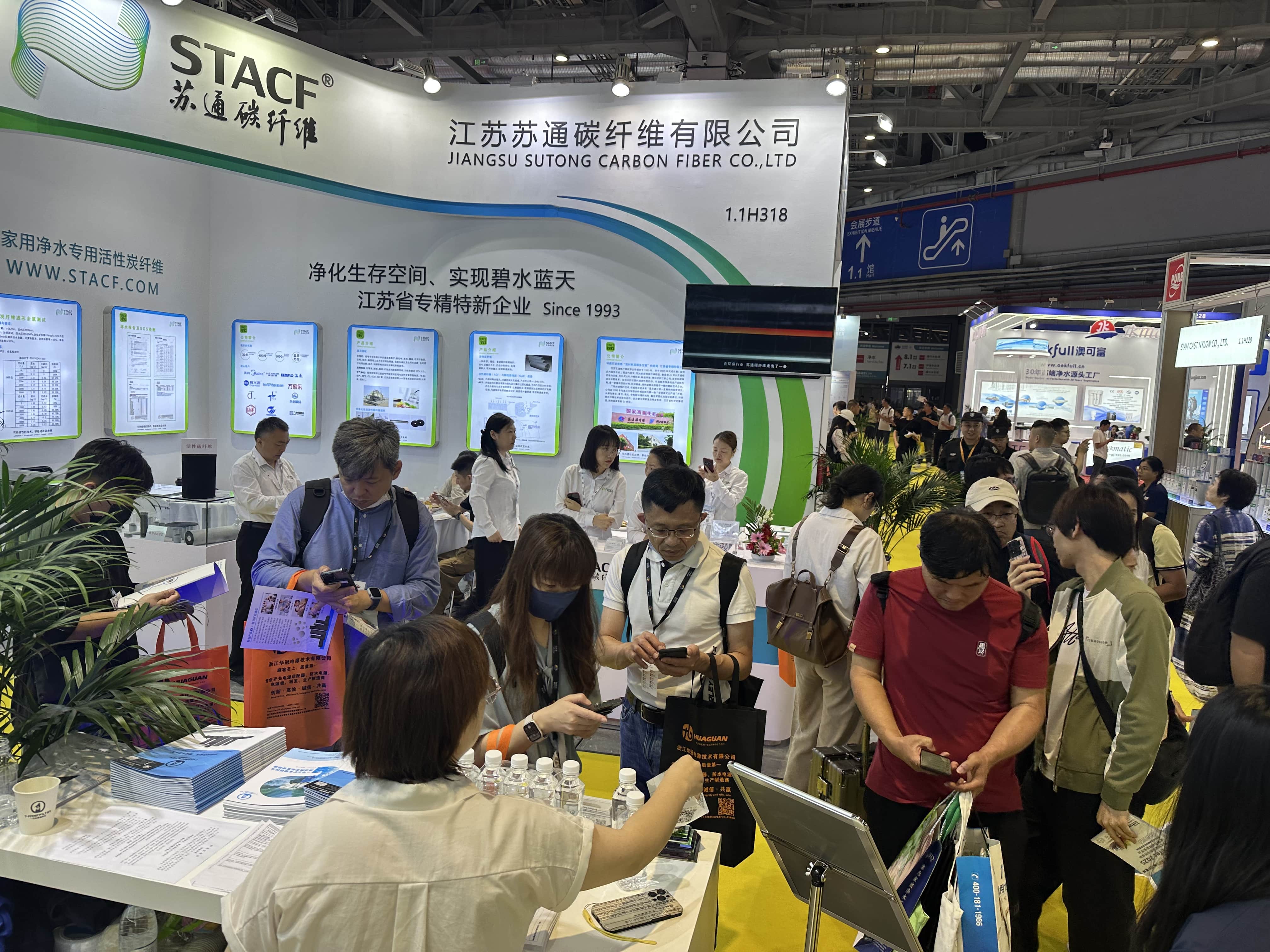 一号芯展台(展位号:1.1H311)前人頭攢動,現場氣氛熱烈非凡。工作人員身著(zhe)統一制服,熱情地向絡繹不絕的參(cān)觀者介紹一号芯最新産品和技術。展台中央的“雙芯驅動,淨護未來”燈光動态特效大圖,吸引衆多觀衆駐足觀看。專業客戶排隊等候與技術工程師進行深入交流。