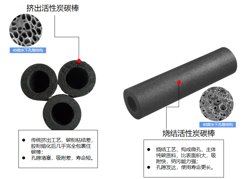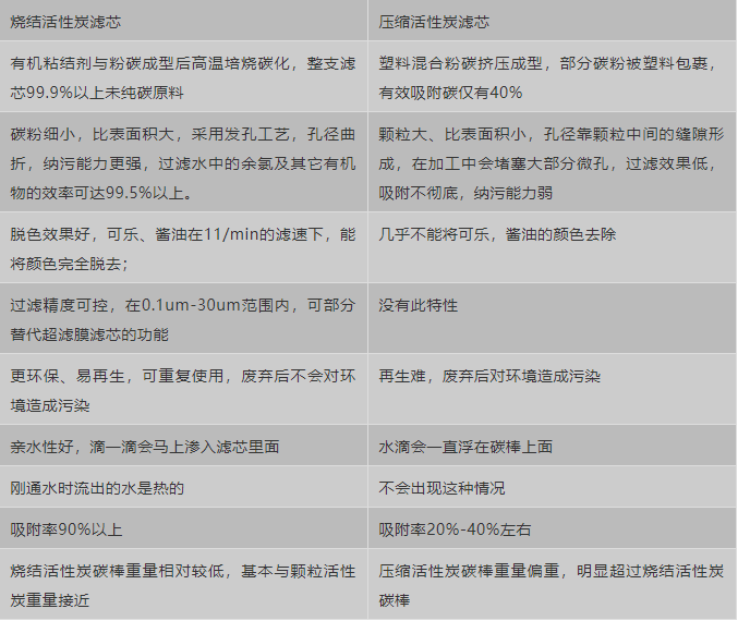 燒結(jié)活性炭濾芯與壓縮活性炭濾芯比較(jiào):