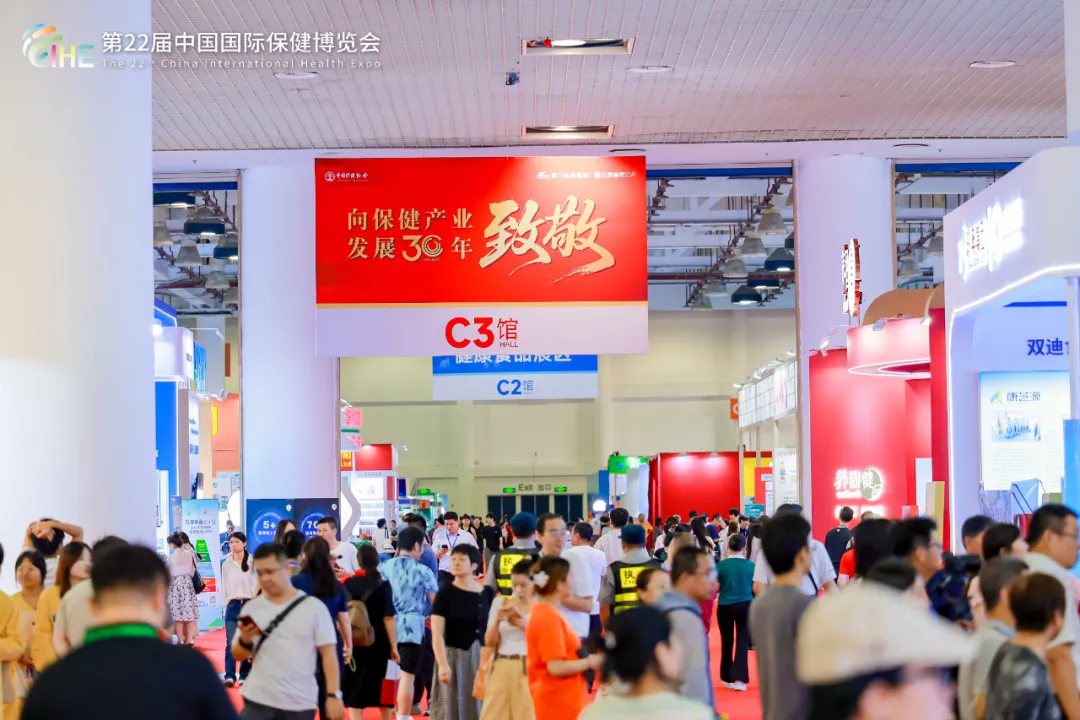 第二十二屆中國國際保健博覽會於(yú)2025年9月20日至22日在廈門國際會議展覽中心盛大舉行,作爲中國大健康領域最具影響力的行業盛會。本屆博覽會以"攜手健康,共創美好"爲主題,規劃3萬平方米展示空間,吸引瞭(le)800家參展企業參與。展會特别設置瞭(le)"向保健産業發展30年緻敬"主題展區,集中展示代表性企業的形象及發展成果,紀念《食品衛生法》確立保健食品法律地位30周年的曆史性時刻。